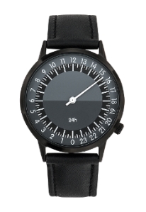 Boîtier métal finition noir mat 40 mm Lunette tournante Mouvement Ronda 515.24H. 1 aiguille Cadran 24 H, 2 tons noir/gris = parties jour/nuit Bracelet cuir noir et marron Bracelet Nato interchangeable, 4 coloris: uni noir, rayé noir/gris, rayé noir/vert, rayé noir/orange Etanche 5 ATM Dimensions de marquage: 22.5 mm Ecrin luxe Quantité: 25 à 99 100 à 249 250 et + Prix: 54.20€ht 49.80€ht 45.90€ht