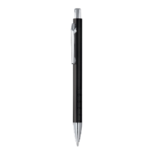 Stylo bille noire Dimension: 140mm x 11mmD Matière: corps et clip plastique Marquage: 1 couleur sur le corps, argent conseillé et par défaut Quantité: 250 500 1000 2500 0.89€ht 0.65€ht 0.46€ht 0.33€ht Ref: STYB835